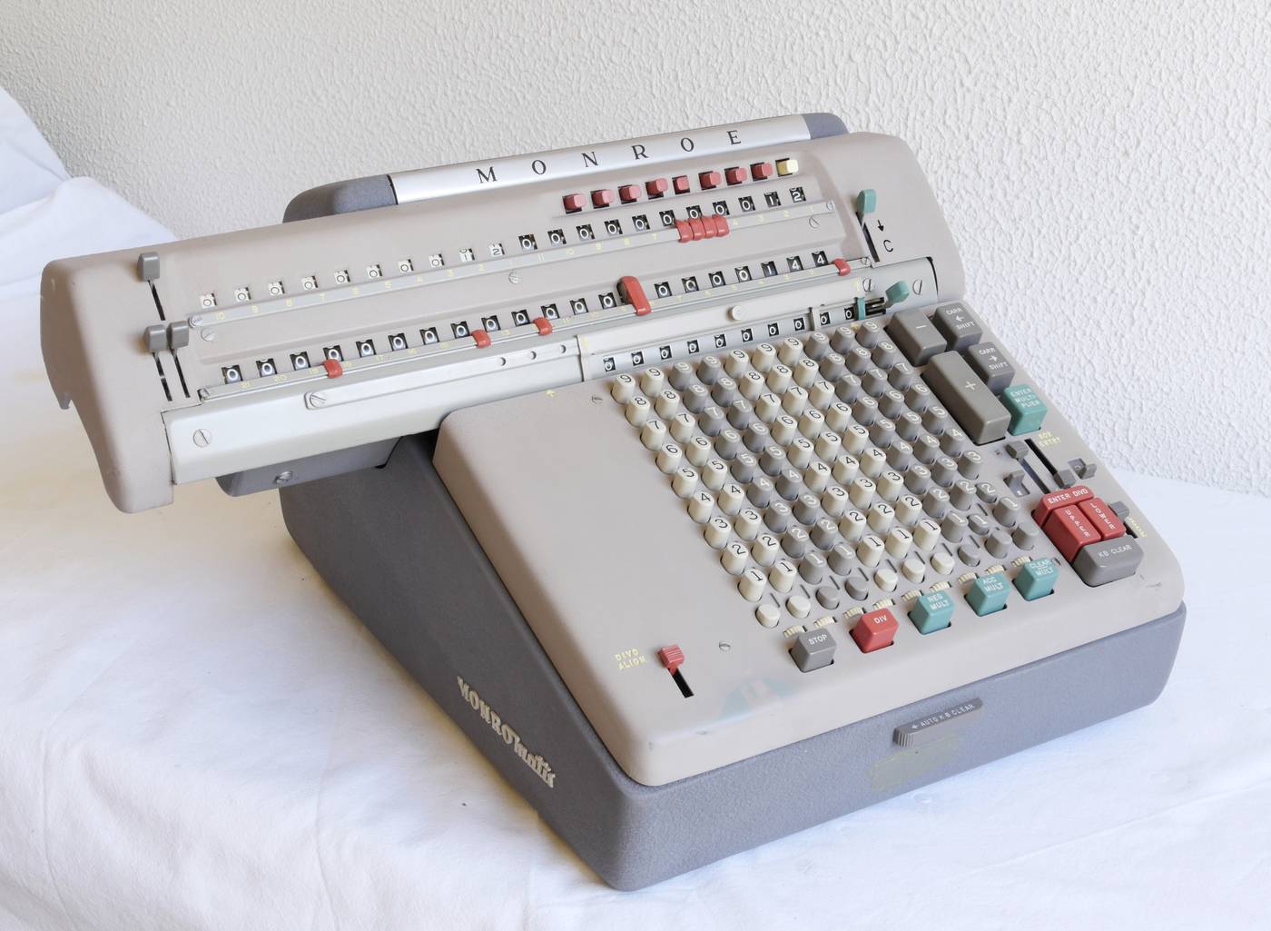 The bottom label shows the Litton Industries logo. Litton acquired the Monroe Calculating Machine Company in 1958. So I guess that this machine was produced after 1958.