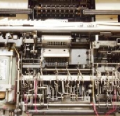 Digits are keyed into a pin box. From there they are transported to toothed racks which transfer the number to reg III or II. The cause of the malfunctioning appeared to be in the toothed racks of the input register. Apparently they lost length. The racks showed remainders of rivets and some kind of decayed plastic. I can only guess that there had ever been a plastic extension for noise reduction. Photo A2 shows in three stages from left to right how I constructed small pieces that are glued onto the front end of the racks. Photo A1 shows the end result.